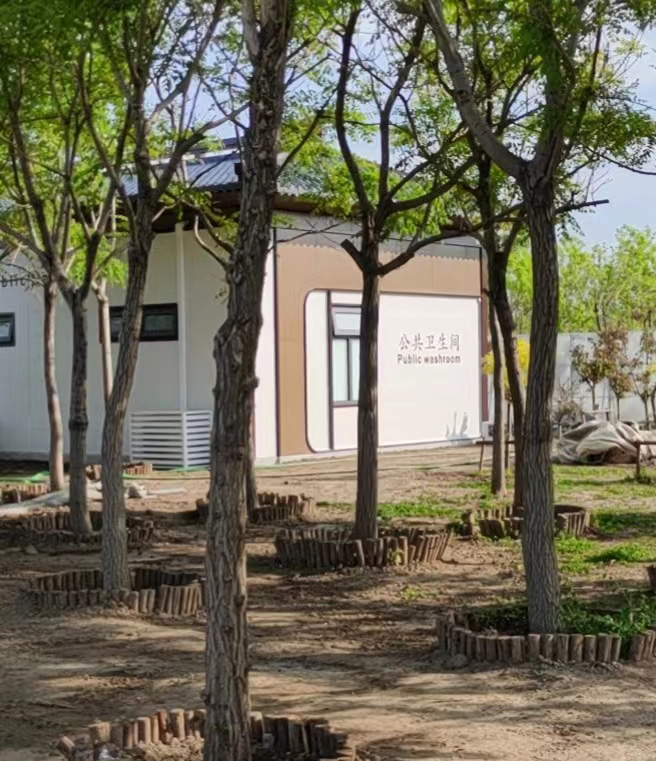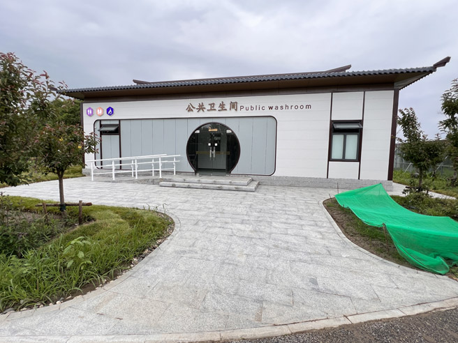本項目位于天津市中新生態(tài)城媽祖文化園內東南角綠化帶處。該建筑為箱體組合裝配式公共衛(wèi)生間,占地面積87.6平方米,廁所基礎為150mm厚C20砼墊層,200mm厚C30鋼筋混凝土墊層。