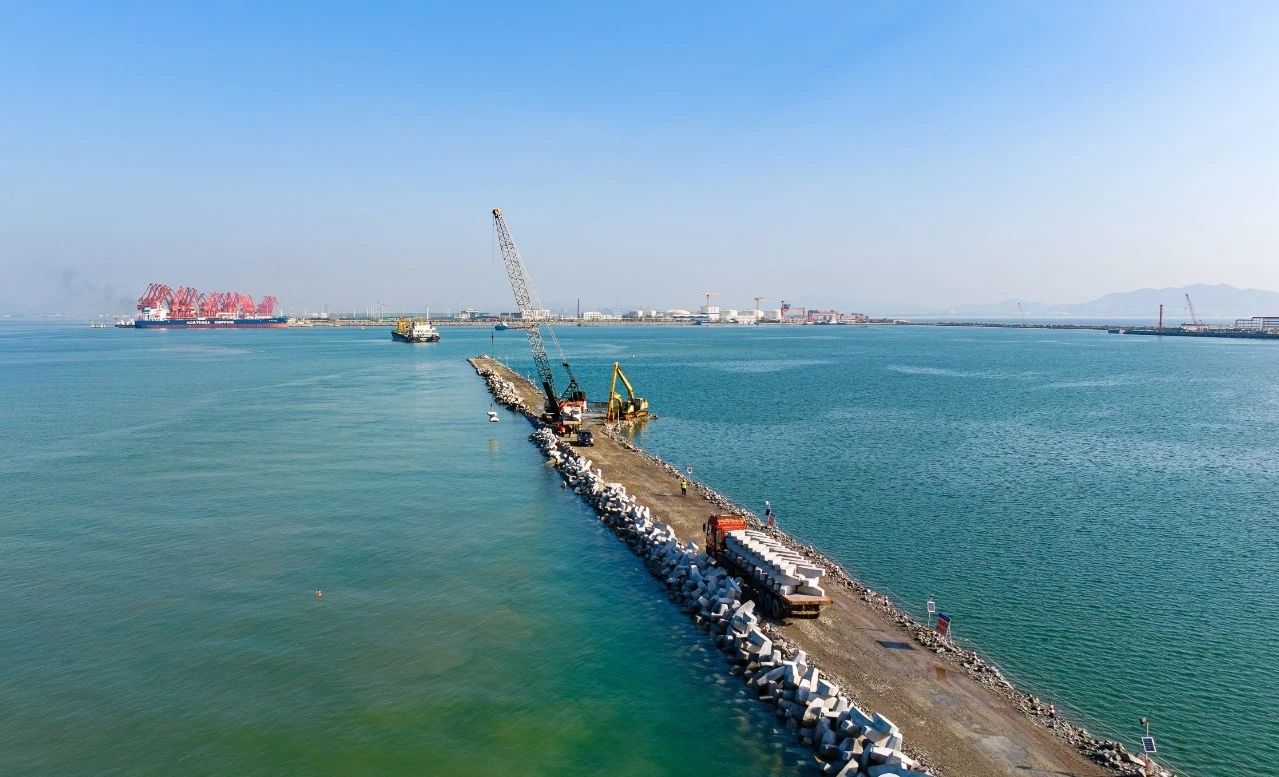 圖片一:西護(hù)岸堤心海上拋石